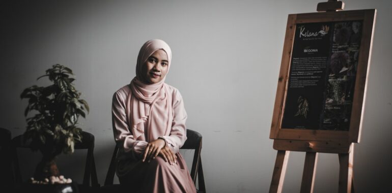 alt: woman in pink long-sleeved dress near easel, title: AI Startup Education