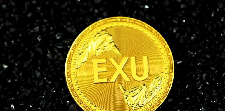 alt: a close up of a gold coin with the word exu on it