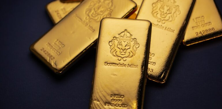 Alt: A pile of gold bars sitting on top of a table