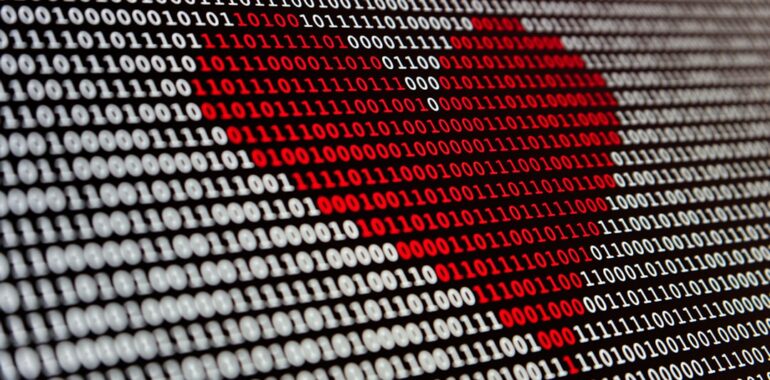 alt=”a heart composed of binary digits on a computer screen” title=”Digital heart of synthetic AI Data Privacy”