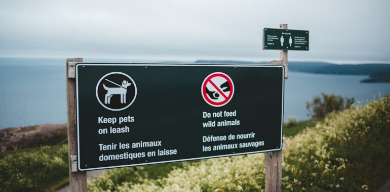 Alt: a sign on the side of a road near a body of water